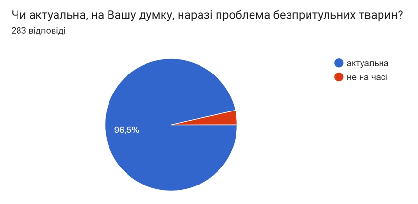 Результати дослідження демонструють, що незважаючи на повномасштабну війну, проблема безпритульних тварин є досить актуальною.