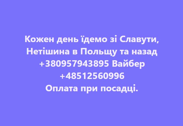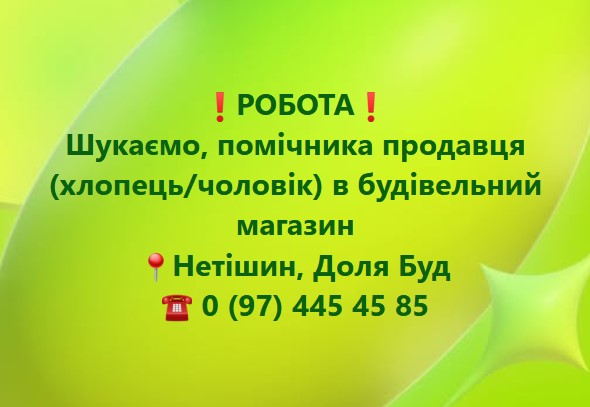 Опублікувати власне оголошення в цій рубриці ви можете безкоштовно за допомогою Facebook-групи: Оголошення та новини ⚡ Нетішин і Славута.